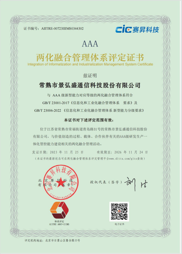 常熟市景弘盛通信科技股份有限公司成立于2006年8月,多年積累沉淀,跨越發(fā)展,目前公司擁有員工近450人,各項(xiàng)專利數(shù)十項(xiàng),注冊(cè)資本1.229億人民幣。公司目前擁有員工近450人,各項(xiàng)專利數(shù)十項(xiàng),注冊(cè)資本1.229億人民幣,成為Apple、Intel、HP、Dell、Google、聯(lián)想、華為、中興、愛立信、Philips、阿特斯、特斯拉、上汽、SAIC Motor,福汽、北汽、菲尼克斯、安費(fèi)諾、泰科等世界知名企業(yè)的重要供應(yīng)商。公司在新工廠籌建企業(yè)內(nèi)部大數(shù)據(jù)中心,建設(shè)基于工業(yè)物聯(lián)網(wǎng)的“智能制造”項(xiàng)目,利用大數(shù)據(jù)管理實(shí)現(xiàn)智能化管理的高科技公司,并加強(qiáng)人才的培養(yǎng)和招聘,引進(jìn)了國際尖端人才,以及面向未來...更多>>